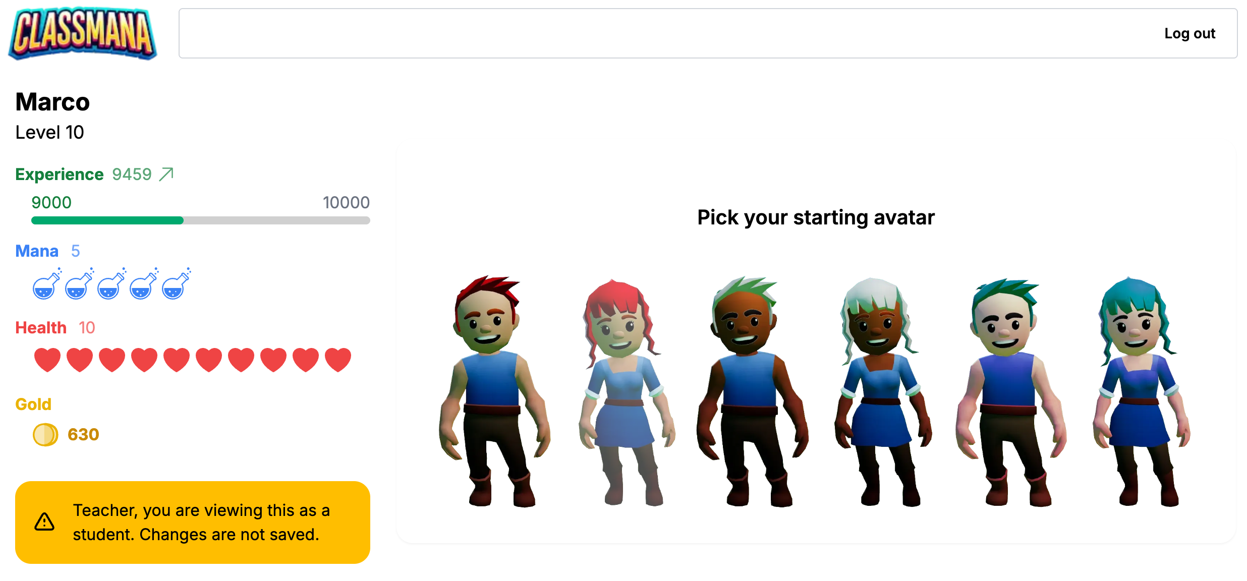 Í öðru stigi fá nemendur þínir innskráningu. Þá geta þeir skráð sig inn á reikning sinn og sérsniðið avatar sinn. Avatörar þeirra birtast í bekkjarstjórnborðinu. Við hvert stig upp geta nemendur búið sig betri búnaði. Alls eru 35 stig, svo þú getur haldið þeim áhugasömum í heilt skólaár þegar þeir myndu stíga upp einu sinni í viku.